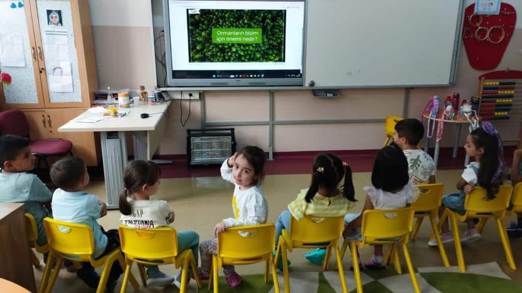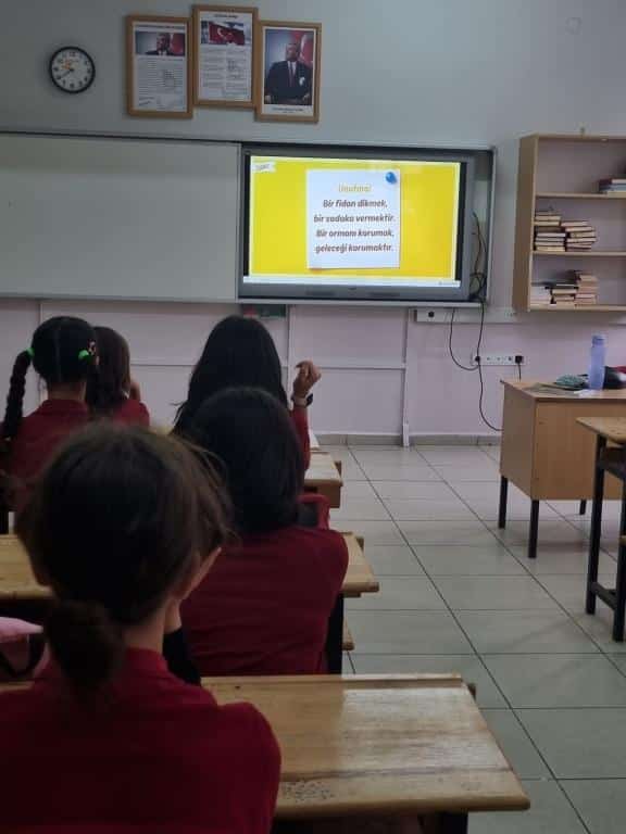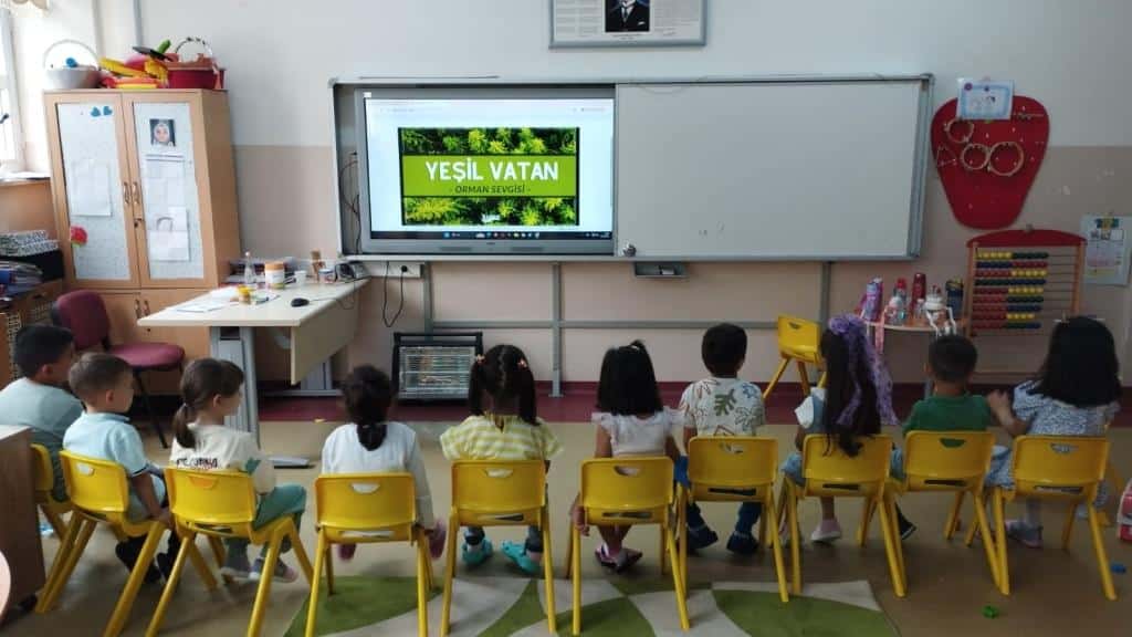 Her Çocuk Bir Fidan İlk Ders Yeşil Vatan Etkinliği kapsamında tüm okulda öğrencilerimize Yeşil Vatan Konulu video izlettirilerek orman varlığımızın değeri, korunması ve artırılmasayla ilgili sohbet edilmiştir.